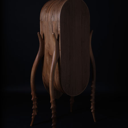 Ідея шафи народилася з уваги до світу комах: форми та ніжки нагадують жуків. Ручна обробка дерева підкреслює природну красу матеріалу, поєднуючи функціональність і органічну естетику.