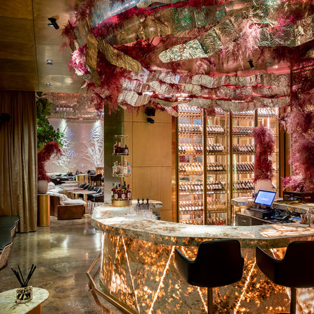 Світлові образи змінюються, немов погода: від тропічного дощу до африканського заходу сонця. На стіні з барельєфом проєктуються хмаринки із заходом сонця, а стеля динамічно відтворює рух хмар і вечірнє небо через медійне світло та м’які перетікання кольорів.
