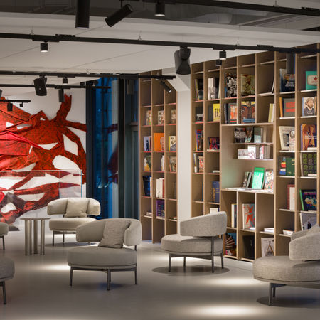 Центральною ідеєю стало створення інтелектуальної системи освітлення, яка не тільки підтримує естетику простору, а й сприяє комфорту відвідувачів. У просторі галереї впроваджено біодинамічне освітлення, що автоматично змінює колірну температуру та інтенсивність протягом доби, імітуючи природний ритм сонячного світла.
