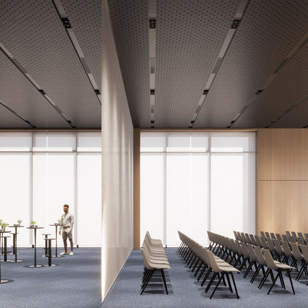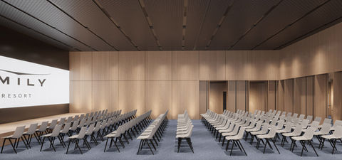 Twins Conference Zone — простір для подій нового рівня Twins Conference Zone — це сучасна конференц-зона, що складається з двох ідентичних за стилем, але незалежних одна від одної просторів, які створені для проведення подій будь-якого масштабу — від камерних презентацій до масштабних форумів. Інтер'єр вирізняється мінімалістичним дизайном з натуральними текстурами дерева, м’яким освітленням та високотехнологічним обладнанням. Кожна зала оснащена сценами, великими LED-екранами, зручними стільцями для глядачів та окремими зонами для кавових перерв чи неформального спілкування. Ресепшн з дизайнерською стійкою слугує зручною точкою для зустрічі гостей та учасників конференцій. Twins Conference Zone в Emily Resort — це місце, де професіоналізм зустрічається з естетикою, а події залишають враження надовго.