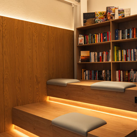 У просторах Superhumans переважають теплі кольори та тепле світло. Освітлення спроєктовано з урахуванням потреб пацієнтів: тепле біле світло у відпочинкових зонах, палатах і коридорах створює затишок, нейтральне біле — у процедурних та операційних приміщеннях забезпечує функціональність.