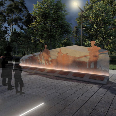 Пам’ятні стели виконані зі сталі «Кортен» i залізобетону, що символізують
