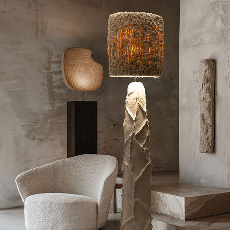 Sea Star — скульптурний торшер, натхненний природними формаціями коралів та каменю, що з’являються внаслідок дії води й часу. Основа виконана вручну з Pleto Biocomposite — натурального матеріалу на основі глини, конопляного волокна, целюлози, деревної стружки, екологічного клею та інших природних компонентів. Абажур з бавовняної бахроми створює м’яке, хвилеподібне світло, що нагадує рух морських припливів. Робота поєднує органічну фактуру, ремісничу точність і сучасний collectible design.