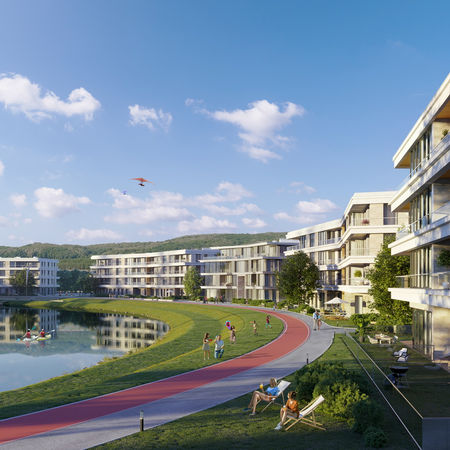 Еко-комплекс бізнес-класу розташований у селі Підгірці, за 15 хвилин від Києва. Це унікальний формат заміського житла низькоповерхової забудови. Складається з декількох кварталів різного формату - від резиденцій до таунхаусів. Комплекс з мінімалістичною архітектурою, високим рівнем безпеки, просторими терасами у кожній квартирі. Перші 4 будинки вже заселені, мешканці насолоджуються мальовничою набережною, власним пляжем, зонами для спорту та відпочинку. Основні переваги: - Розташування в мальовничому місці з власною біоводоймою. Комплекс повністю оточений природою. З вікон квартир відкриваються чудові краєвиди на навколишні пагорби, які дійсно нагадують гори. - Всі будинки мають невелику кількість поверхів, що створює більш затишну, спокійну та приватну атмосферу. Квартири мають кращу інсоляцію та отримують більше природного світла. - Власна водойма розташована у самому серці комплексу, що дозволяє мешканцям насолоджуватися «морськими» краєвидами прямо з вікон своїх квартир. Навколо озера розташована найдовша серед усіх жк Київського регіону прогулянкова зона у майже 1,5 км. Park Lake City суттєво відрізняється від всіх представлених на ринку нерухомості проектів високим рівнем благоустрою: висаджені бонсаї та пінії, декоративні луки та різнотрав’я, включаючи рідкісні рослини для нашого регіону.