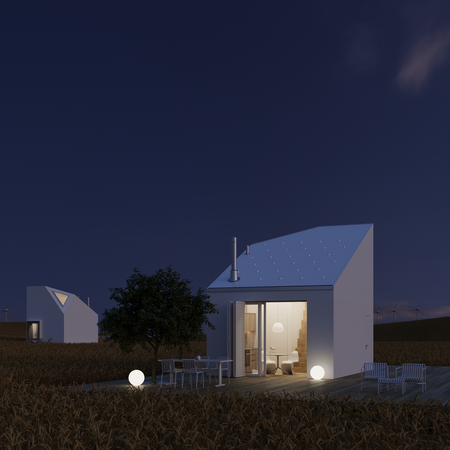 У відповідь на екологічну кризу та занепад сіл ми створюємо компактне житло з біорозкладних конопляних матеріалів, розроблених у власному R&D в Україні. Наша мета — затримати людей у громадах, надаючи якісне житло та робочі місця в агросфері. Будинок має мінімальні габарити, але повну функціональність — це модель сталого життя, де архітектура служить відновленню природи й спільнот.