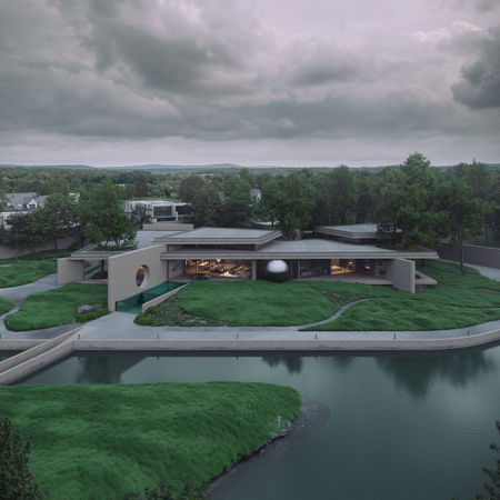 Поєднання бетону, ландшафту та смарт-технологій створює гармонійний та затишний куточок на березі річки.
